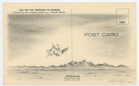 And here are a handful of the postcard drawings I’ve lovingly made for my paid subscribers. You guys have brought me back to the drafting table and I’m forever indebted.